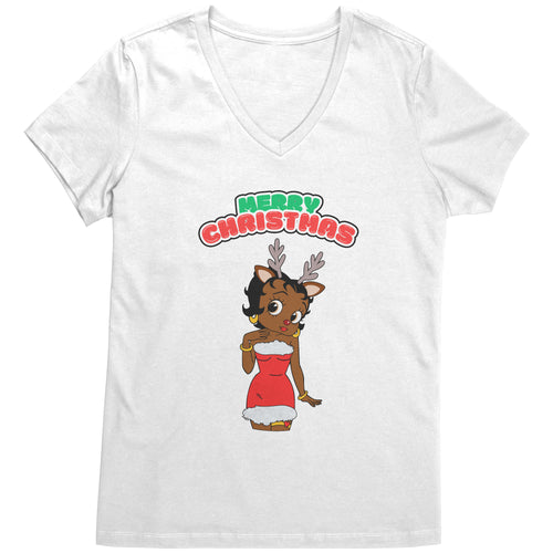 Betty Boop Vneck, Merry Christmas Womens Shirt, Betty Boop Shirt, Christmas Shirt Christmas Gifts For Her Reindeer Christmas Womens Clothing