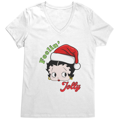 Feeling Jolly Shirt, Cute Betty Boop Vneck, Betty Boop Christmas Shirt, Betty Boop Womens Vneck, Christmas Gifts For Her Womens Clothing