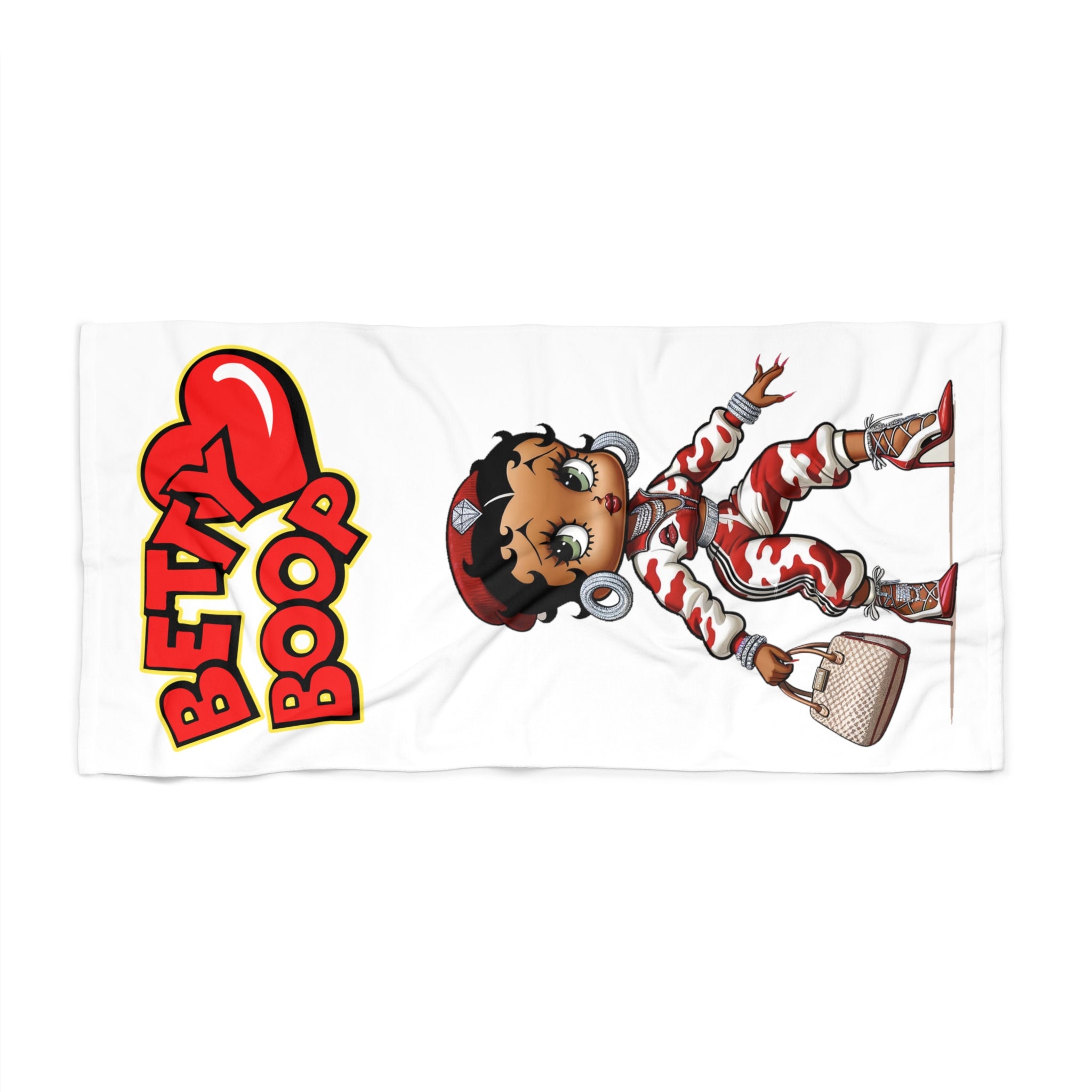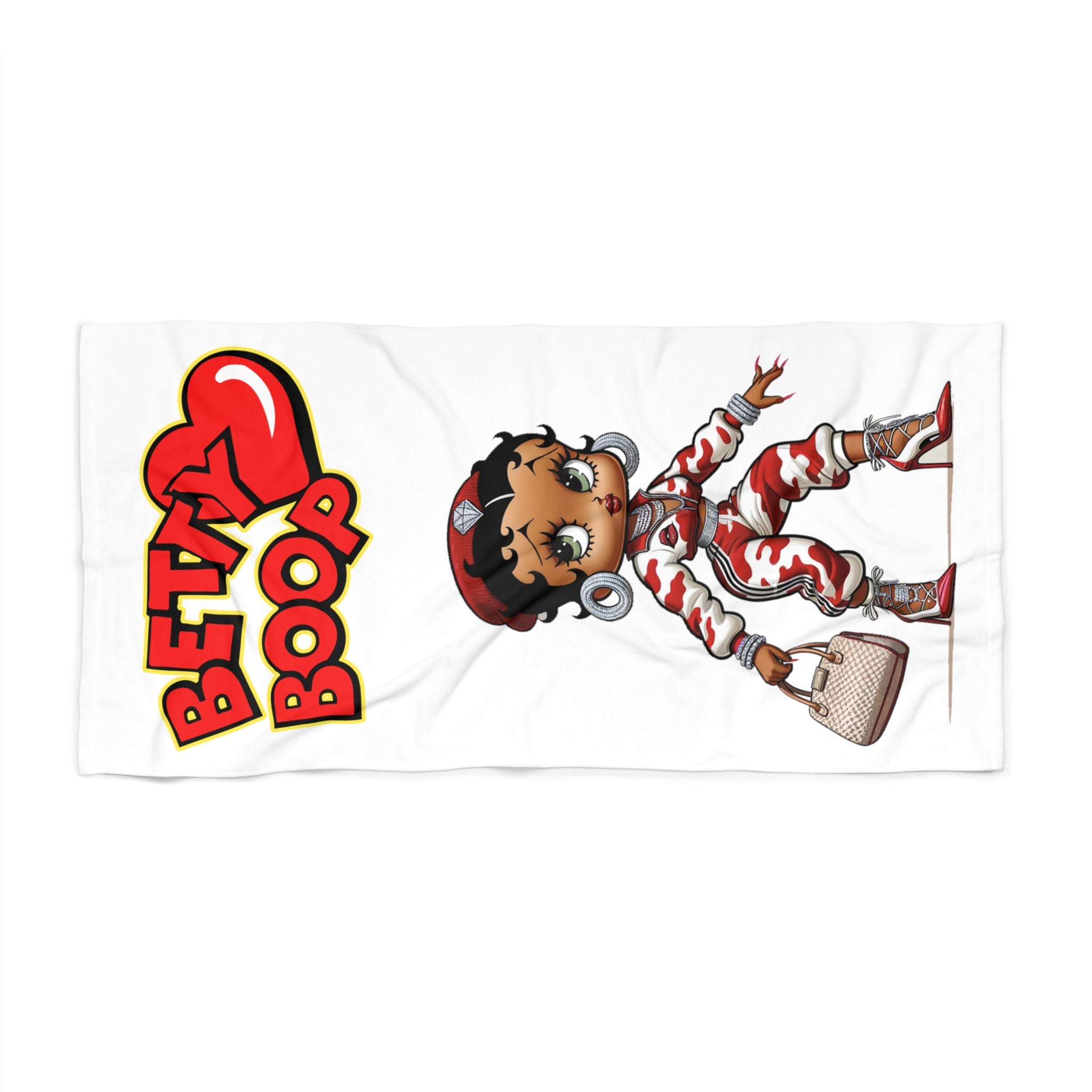 - Betty Boop steals the show with a modern twist, sporting a hip urban outfit complete with dazzling accessories, making this towel a standout piece.