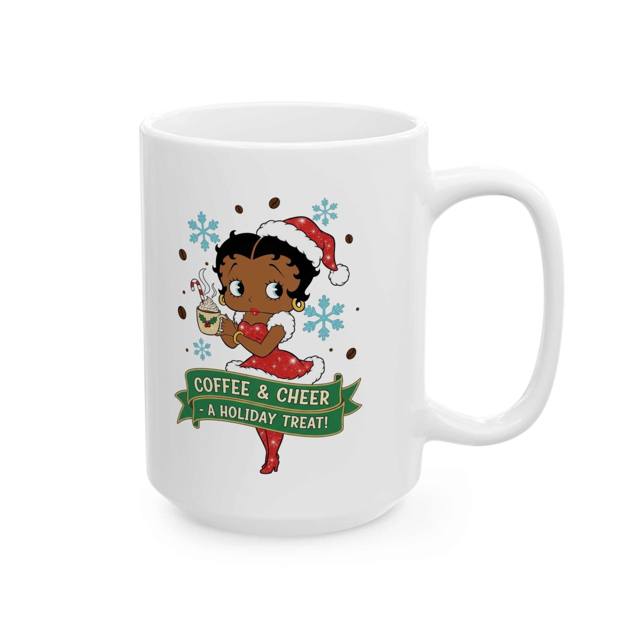 This Betty Boop Design Mug is perfect for coffee lovers and fans of the classic cartoon character. With vibrant colors and a glossy finish, this holiday mug is ideal for Christmas parties and makes a great gift.