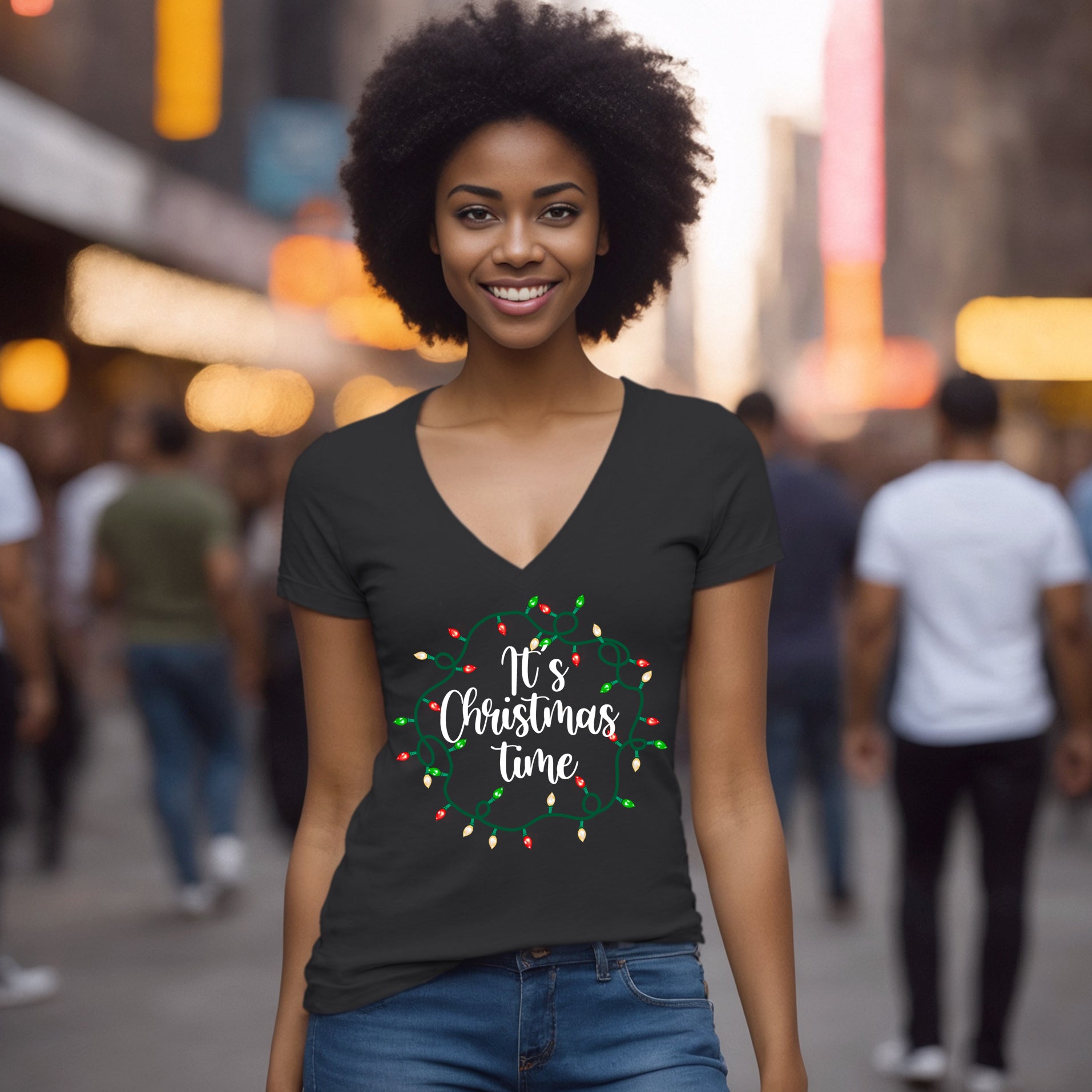 It's Christmas Time Vneck Shirt, Merry Christmas Vneck Shirt, Christmas Shirt, Christmas Lights T-Shirt, Christmas Present, Christmas Gift
