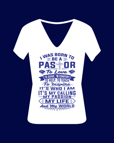 Born to Be A Pastor PAPA V-Neck T-Shirt (Blue/White V-Neck Unisex)