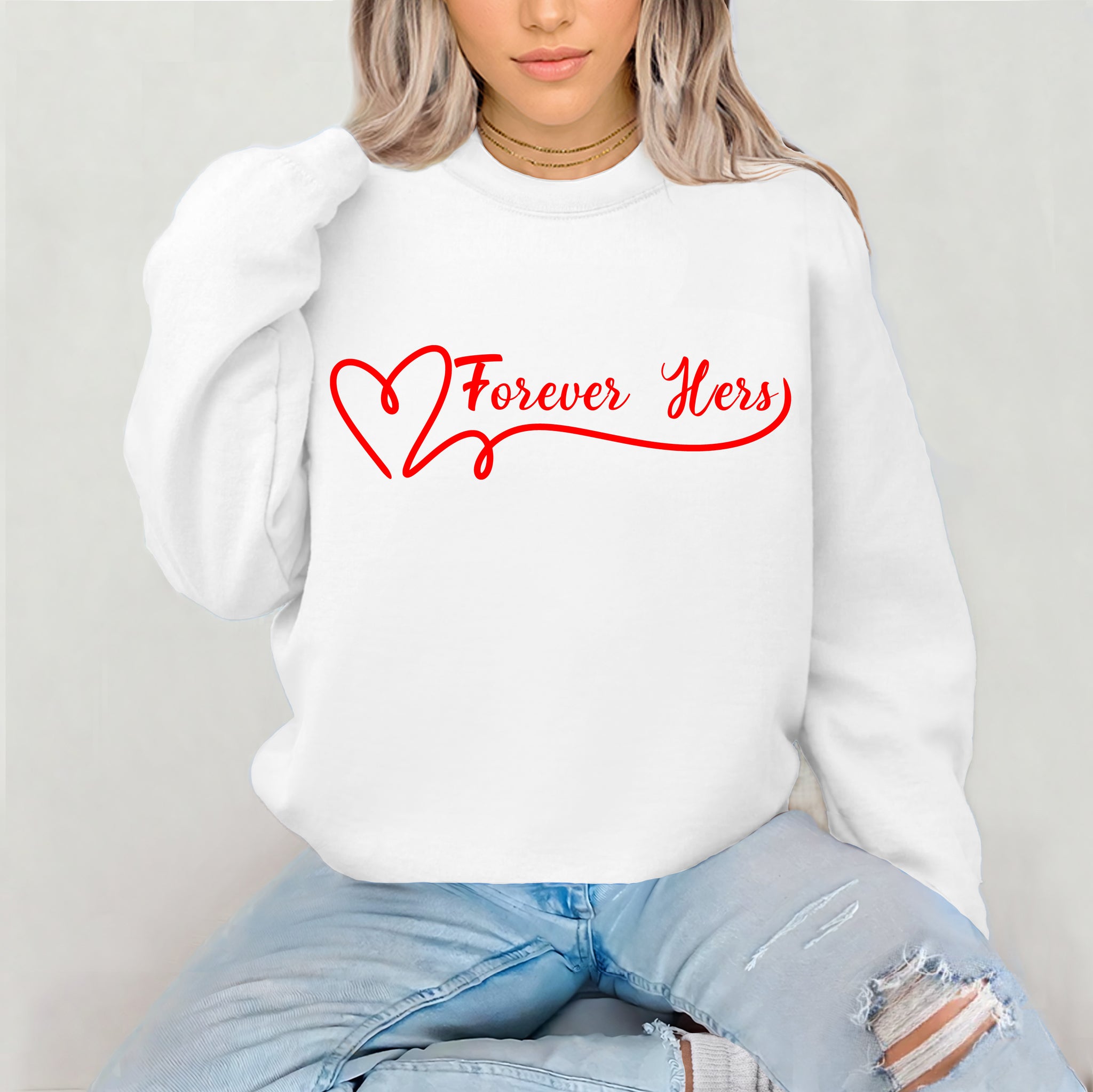 Show off your love with this adorable "Forever Sweatshirt" couple sweatshirt set. Perfect for Valentine's Day, anniversaries, or just because, these cozy sweatshirts make a sweet and thoughtful couple gift. Celebrate your bond in style with this matching set, ideal for keeping warm and showing your love all year round!